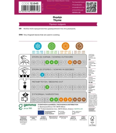 Θυμάρι (Thymus vulgaris) | Σπόροι Αρωματικών Φυτών Gemma