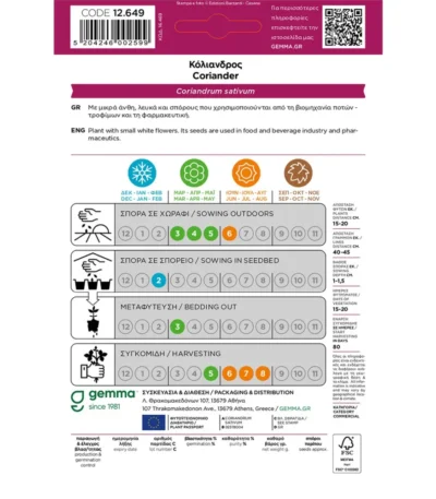 Κολίανδρος (Coriandrum sativum) | Σπόροι Αρωματικών Φυτών Gemma