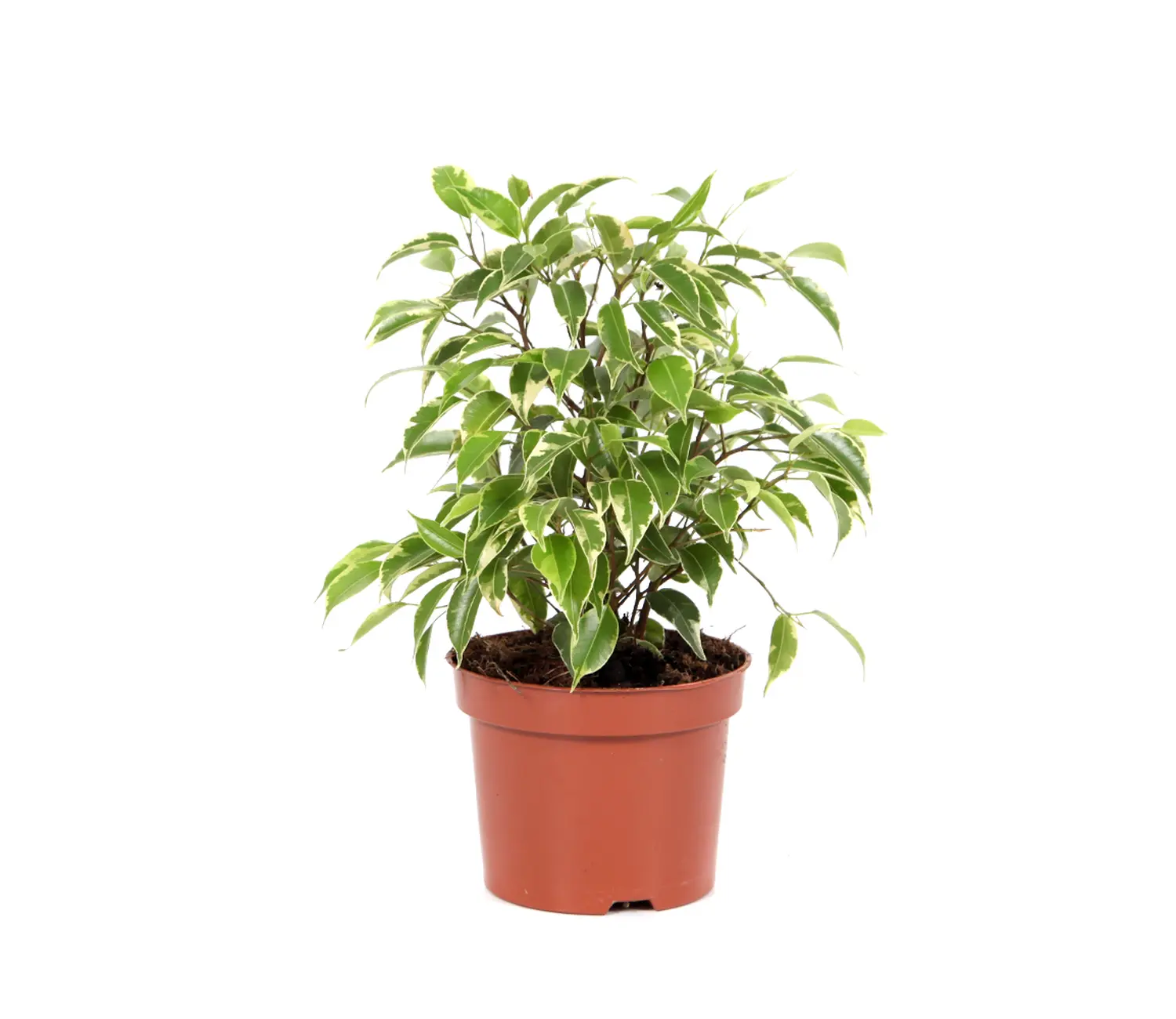 Ο Ficus benjamin είναι ίσως το πιο γνωστό και δημοφιλές είδος του γένους Ficus και αποτελεί εξαιρετική επιλογή για εσωτερικούς χώρους. Το εντυπωσιακό του φύλλωμα είναι στενό, οβάλ, γυαλιστερό, με πρασινοκίτρινη απόχρωση, προσφέροντας πλούσια και κομψή εμφάνιση. Είναι φυτό χαμηλής συντήρησης και συμβάλλει στον καθαρισμό του αέρα, φιλτράροντας βλαβερές ουσίες.