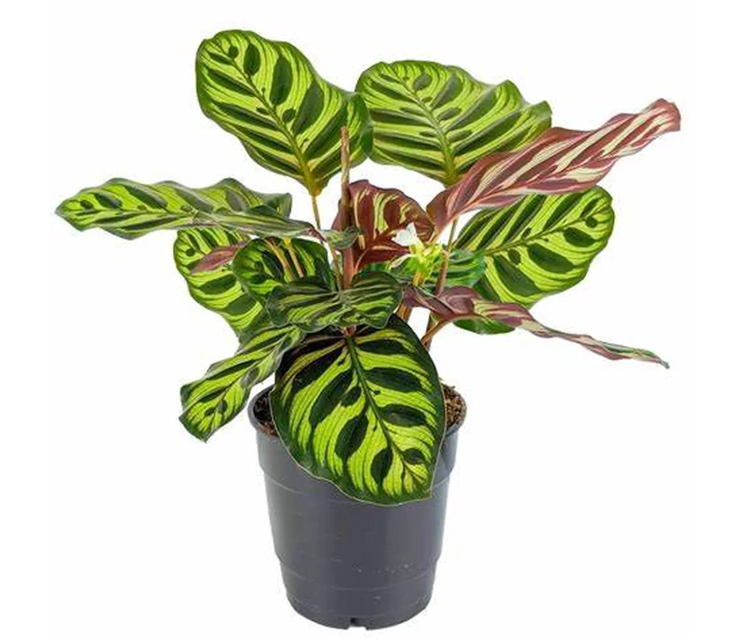 Η Calathea makoyana, γνωστή και ως “Peacock Plant” (φυτό παγώνι), είναι ένα από τα πιο εντυπωσιακά φυτά εσωτερικού χώρου. Ξεχωρίζει για τα μεγάλα, στρογγυλά της φύλλα με μοναδικά σχέδια: ανοιχτό πράσινο φόντο με σκούρα σχέδια που θυμίζουν φτερά παγωνιού, ενώ στην κάτω επιφάνεια έχουν μια υπέροχη μοβ απόχρωση. Είναι ιδανική επιλογή για όσους αναζητούν ένα διακοσμητικό φυτό που τραβάει τα βλέμματα και προσθέτει εξωτική ατμόσφαιρα στον χώρο.