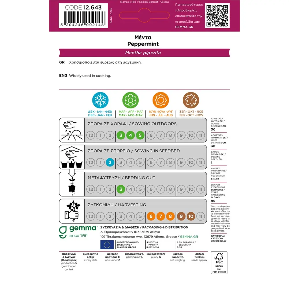 Οι σπόροι μέντας της Gemma διασφαλίζουν ότι καλλιεργείτε την αυθεντική Mentha piperita με όλες τις φαρμακευτικές και αρωματικές της ιδιότητες. Με υψηλά ποσοστά φυτρωτικότητας, ο φάκελος αυτός είναι η σίγουρη λύση για να έχετε πάντα διαθέσιμο το πιο δροσερό βότανο της φύσης.
