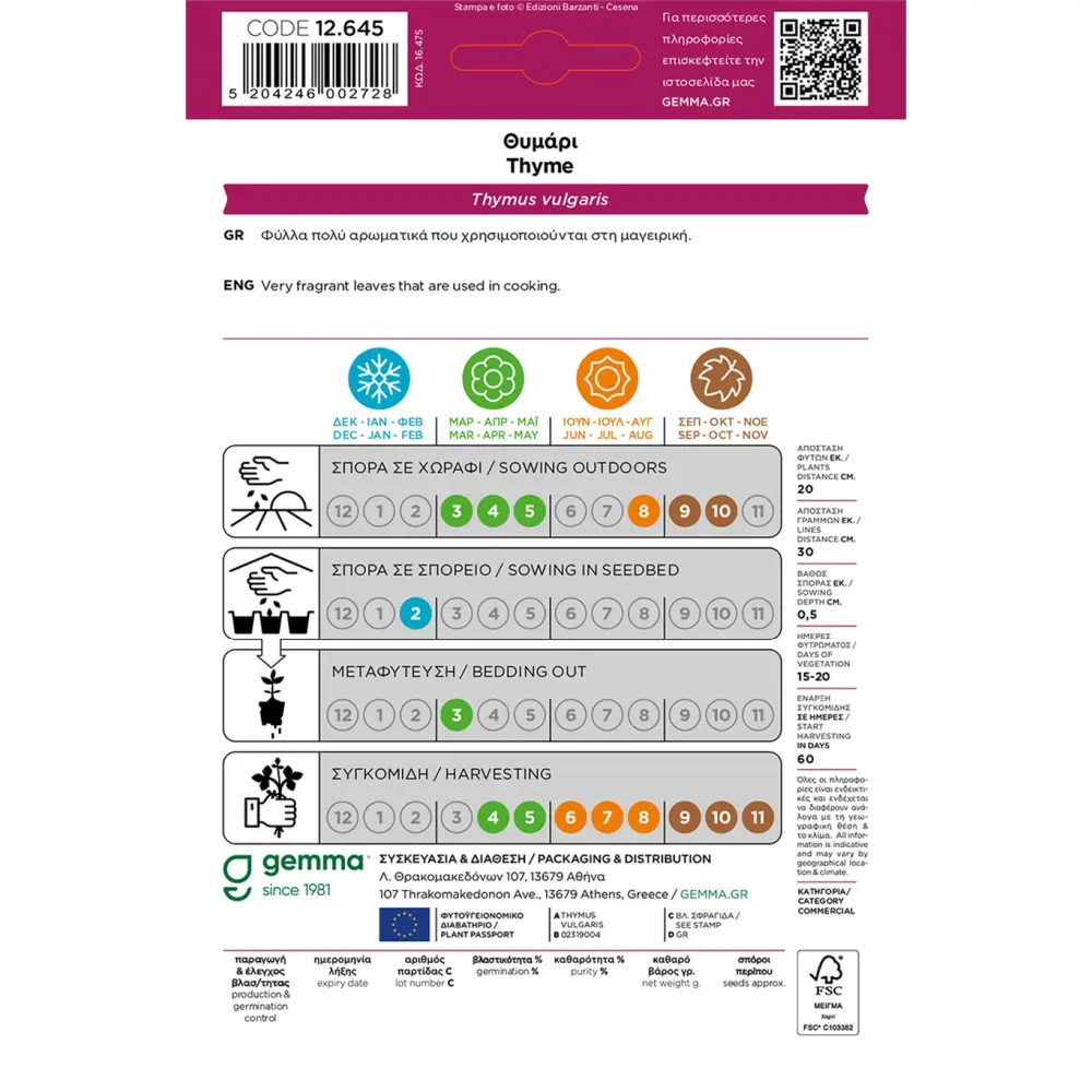 Η σπορά του Θυμαριού από τους φακέλους της Gemma είναι μια διαδικασία που θα σας χαρίσει φυτά μεγάλης διάρκειας ζωής.